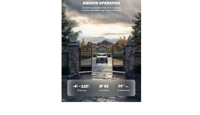 Built to Withstand Any Weather: This electric gate opener includes an IP55 casing to safeguard its all-copper motor, delivering dependable service in temperatures from -4 to 122°F, while its sleek and polished design adds both style and durability