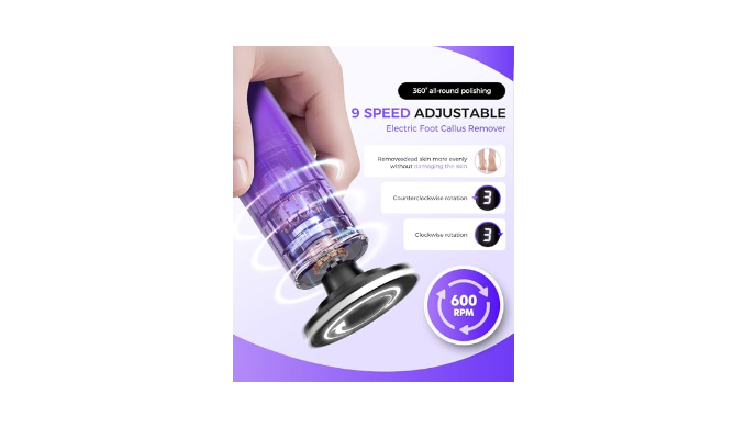 【Intelligent Speed Adjustment System】: 9 levels of adjustable speed, from 1-3 gentle polishing to 7-9 strong removal, with LED display, suitable for sensitive skin or stubborn calluses.