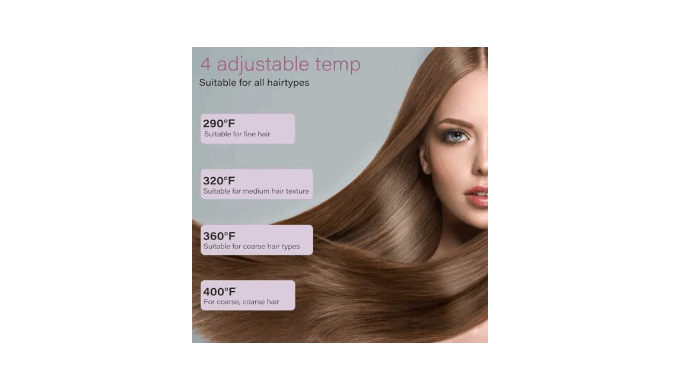 Adjustable Temperature for All Hair Types: With an adjustable temperature range from 280℉ to 390℉ and an easy-to-read, this hair straightener caters to all hair types and lengths. 4 precise heat settings ensure safe and effective styling without damage, tailored to your specific hair needs.